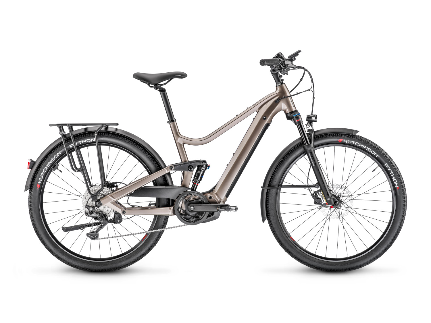Avec son cadre de 100mm de débattement avant et arrière confié à l’amortisseur Moustache Magic Grip Control ainsi qu’à une fourche Suntour XCR, sa motorisation Bosch équipée du système Performance Line CX Smart System avec batterie intégrée PowerTube 500Wh, ses pneus ultra confort Hutchinson Python, notre Xroad FS 3 vous emmène comme sur un tapis volant ! Et avec ses accessoires pratiques qui vous simplifient la vie tels que son porte-bagages compatible QL3 et MIK ou son éclairage puissant, le Xroad FS 3 vous accompagnera vraiment partout, et toujours de façon bien détendue…