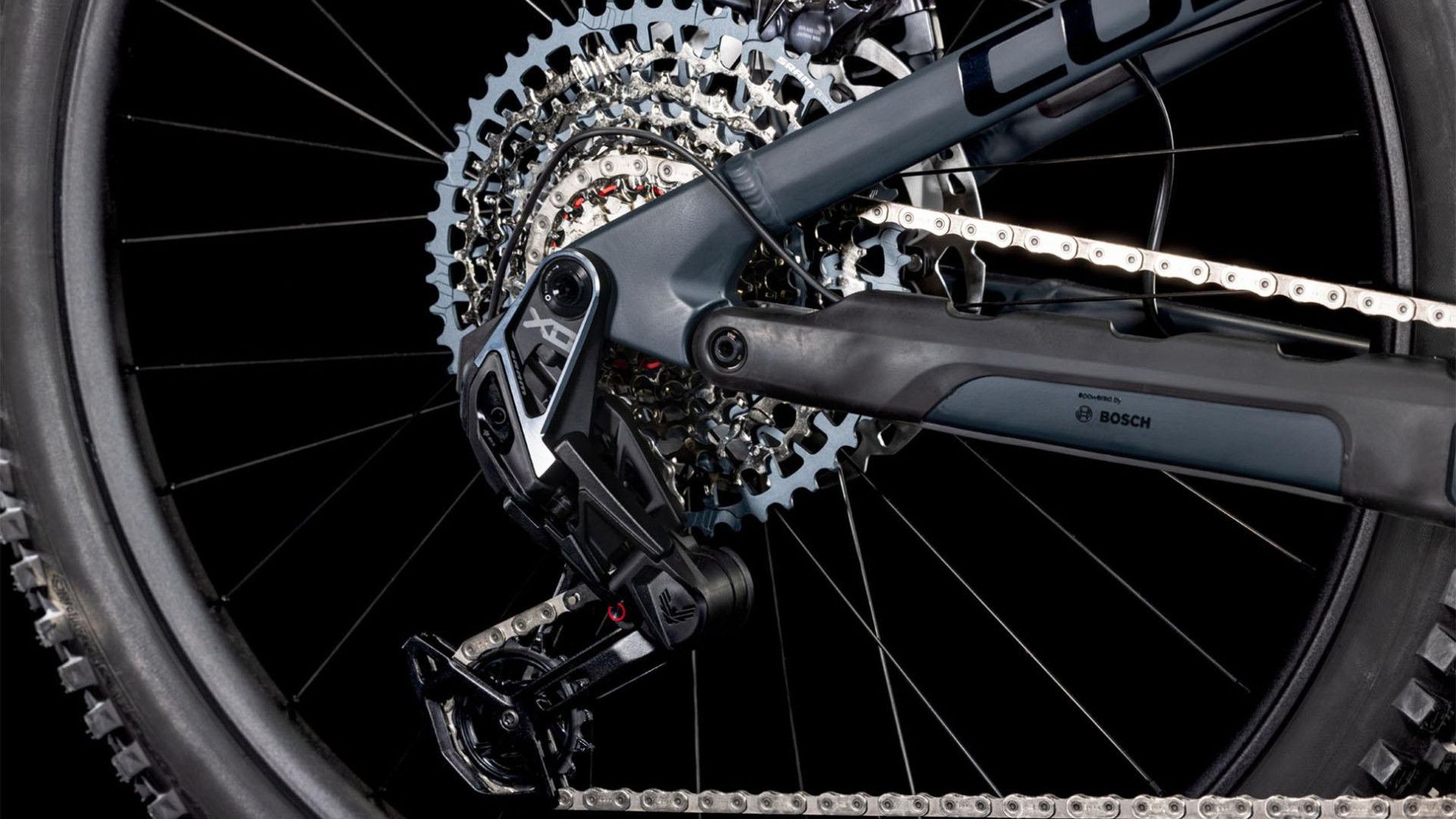 Le Stereo Hybrid ONE77 HPC AT 800 est conçu pour les grandes montagnes. À cette fin, nous avons monté la fourche Fox Float 38 Factory GripX2 et l’amortisseur Float X2 Factory car, lorsque vous utilisez pleinement 170 mm de débattement, vous devez avoir la garantie d’être entre de bonnes mains. La transmission XO Eagle 1×12 de Sram sélectionne avec une précision électronique étonnante, transmettant votre puissance sur les sentiers avec l’aide de l’unité d’entraînement CX douce et silencieuse de Bosch et de la batterie PowerTube de 800 Wh. Nous avons ajouté une tige de selle télescopique pour plus de confiance et de maniabilité sur les sentiers difficiles, tandis que les freins à disque hydrauliques Shimano XT vous permettent de contrôler votre vitesse. Et les roues Newmen Beskar 30, en configuration mulet, avec les pneus Schwalbe 2,4 pouces Magic Mary et Tacky Tan, vous maintiennent en mouvement, quels que soient les obstacles qui se trouvent sur votre chemin.